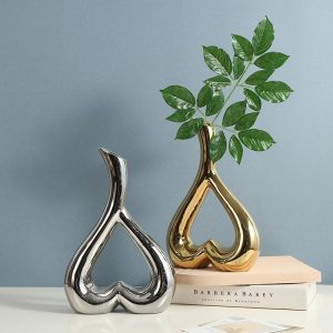 Electroplated Ceramic Vase with Nordic Heart Design – Elegant Home Decor