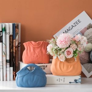 Elegant Frosted Ceramic Handbag Vase – Simple European Retro Design