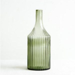 Elegant Green Striped Glass Vase for Hydroponics and Floral Displays, Timeless Home Decor Piece