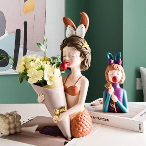 Whimsical Nordic Bubble Girl Resin Floral Vase Décor