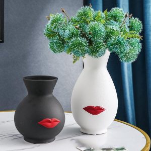 Artisanal Minimalist Lip and Face Ceramic Vase