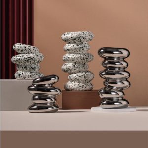 Artisanal Nordic Pebble-Shaped Ceramic Flower Vase