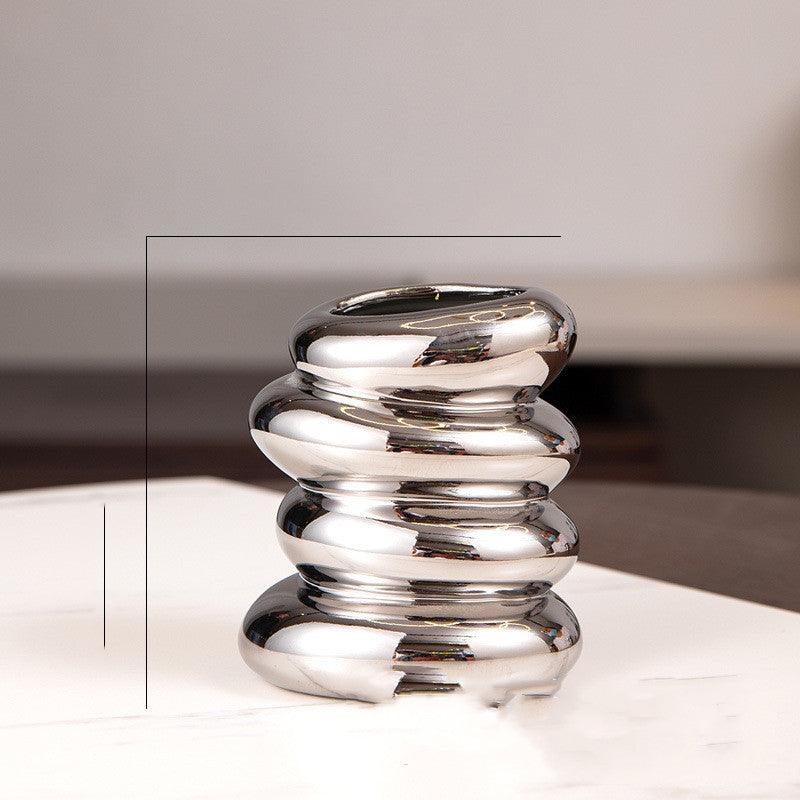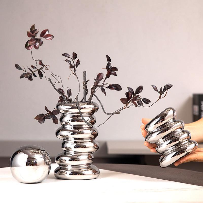 This vase showcases a remarkable silver-plating finish that enhances its ceramic body, offering a sleek and modern appeal. With options in various sizes, it is perfect for a multitude of arrangements, from vibrant floral displays to elegant solitary stems.