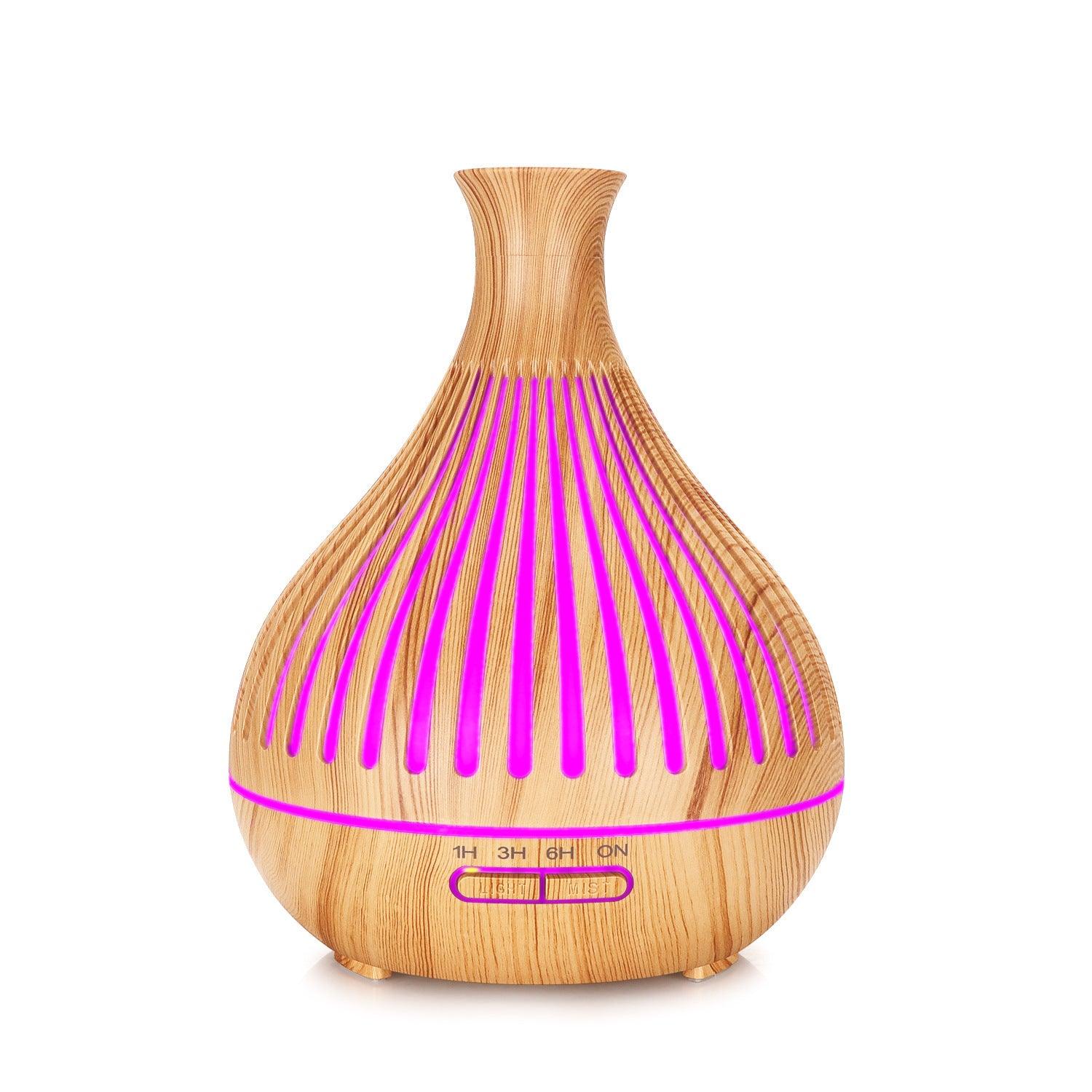 Artisan Wood Grain Aromatherapy Humidifier – 400ml Silver Accent