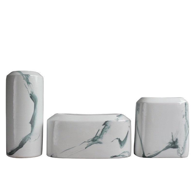 Artisanal Hand-Painted Ceramic Vase Set for TV Cabinet