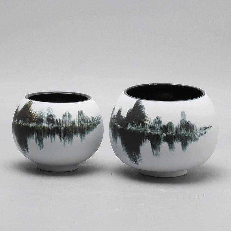 Indulge in the exquisite charm of our Artisanal Ink Painting Ceramic Vase, meticulously crafted to elevate your living spaces with a touch of elegance.