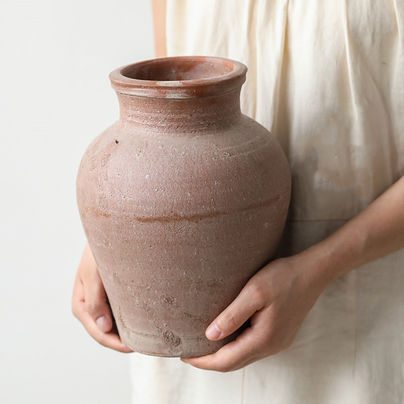 Artisanal Vintage Stoneware Vase – Handmade Red Clay Decorative Pot
