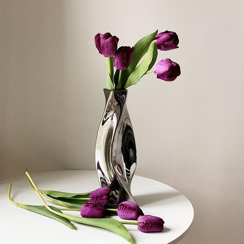 Discover the exquisite charm of the Electroplated Silver Vase, a stunning fusion of modern elegance and timeless artistry. This handcrafted ceramic vase is not only a functional piece but a captivating work of art that brings sophistication to any space.