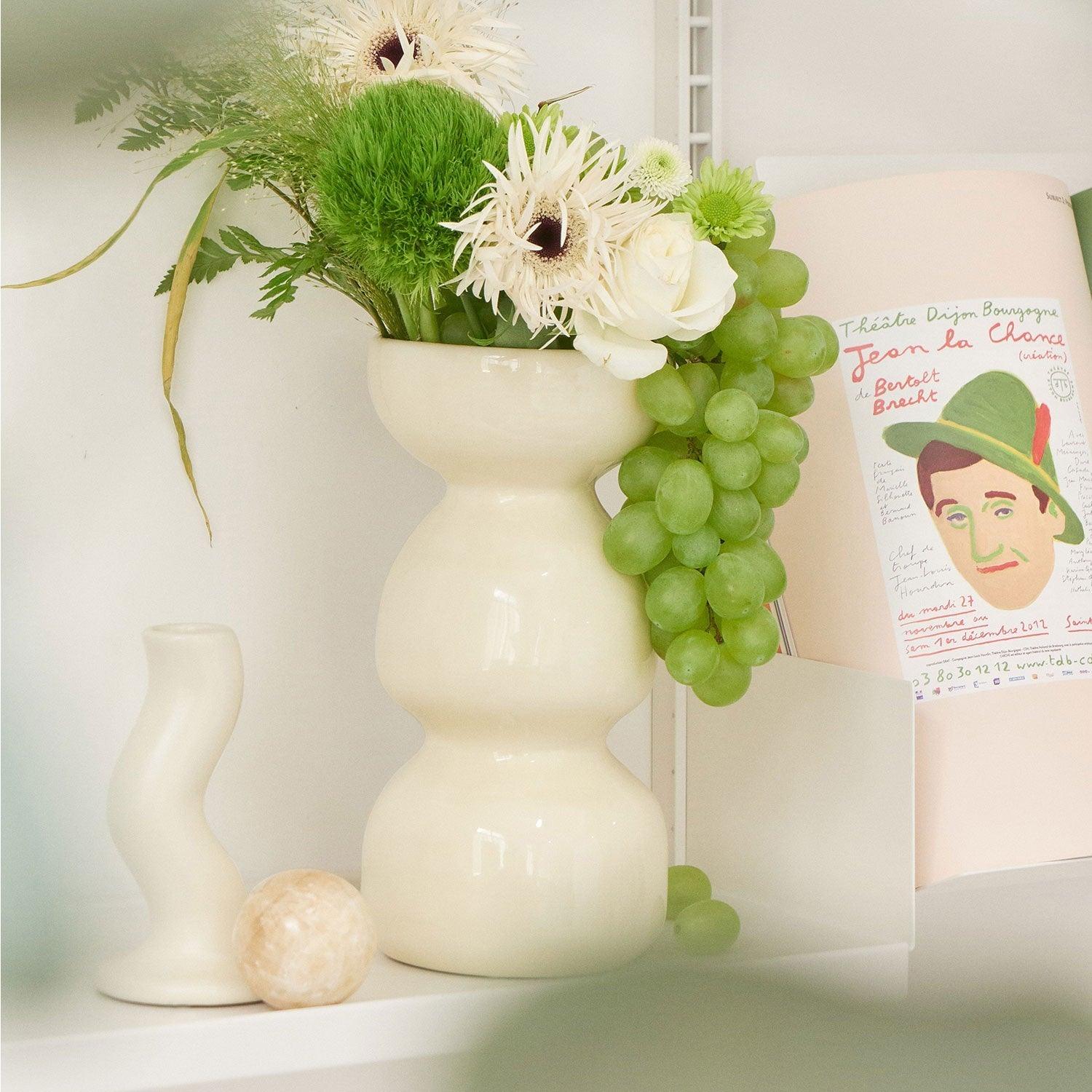 Elegant Cream Wave Ceramic Vase