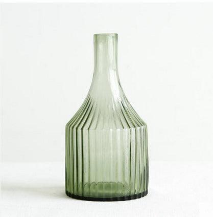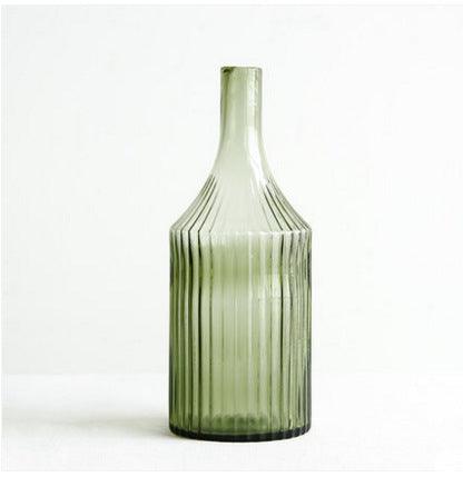 Elegant Green Striped Glass Vase for Hydroponics and Floral Displays
