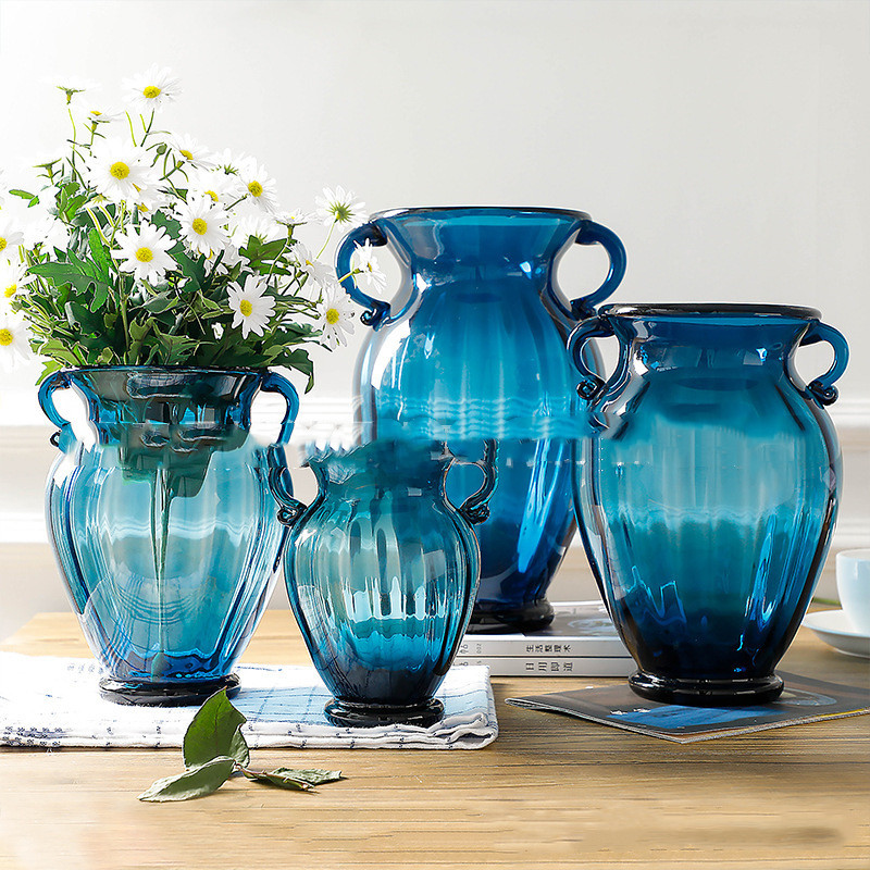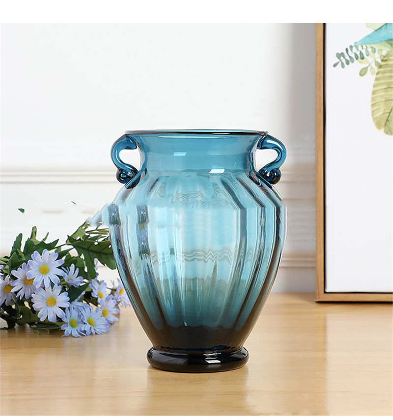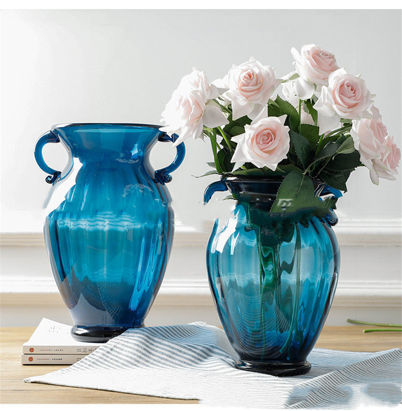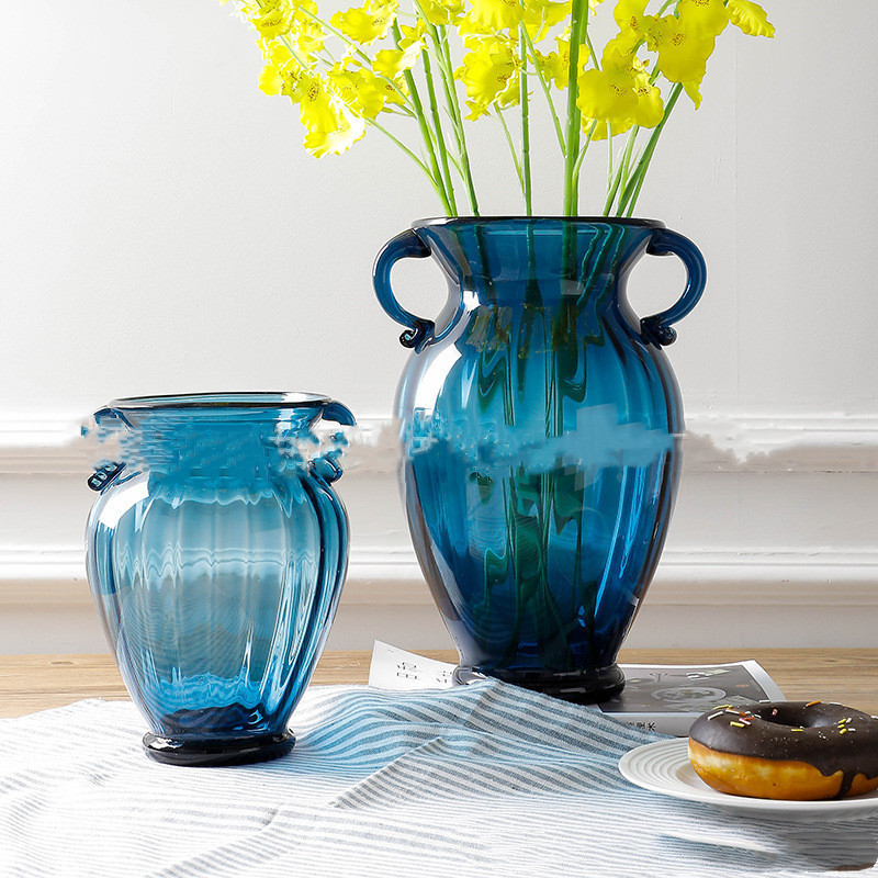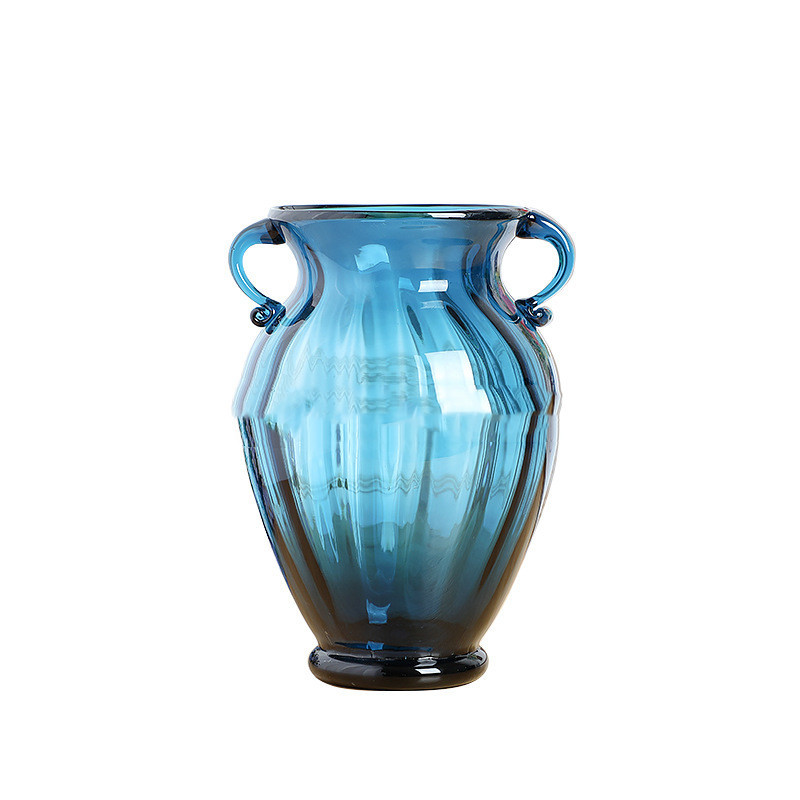 Discover the exquisite charm of our Mediterranean-Inspired Clear Binaural Glass Vase, a stunning piece that elegantly combines artistic craftsmanship with functional design.
