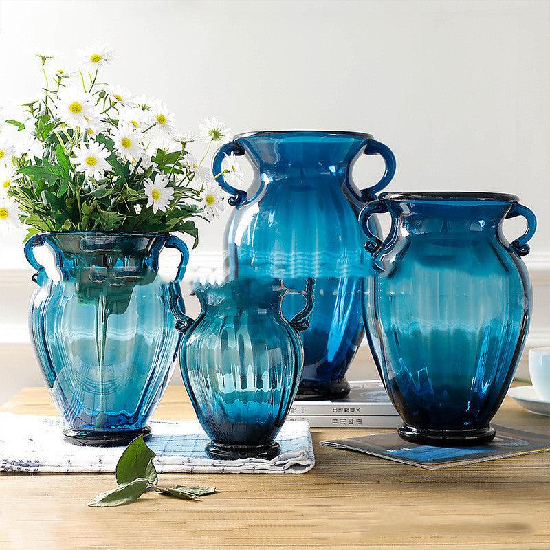 Mediterranean-Inspired Clear Binaural Glass Vase in Blue
