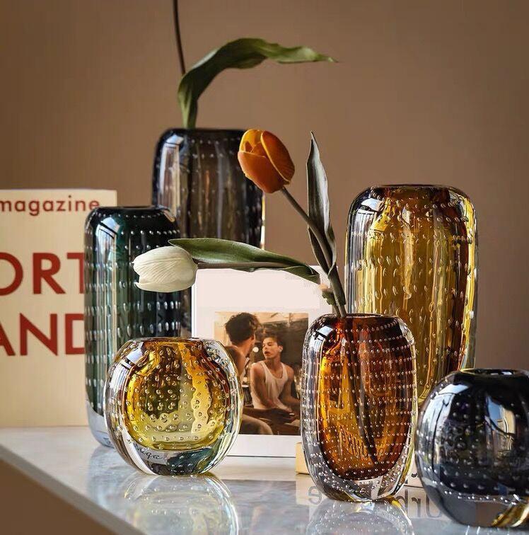Elevate your home decor with the exquisite Modern Artisanal Colored Glass Bubble Vase Collection. Each vase is a testament to the beauty of handcrafted design, skillfully made from high-quality ordinary glass to bring a touch of elegance to any space.