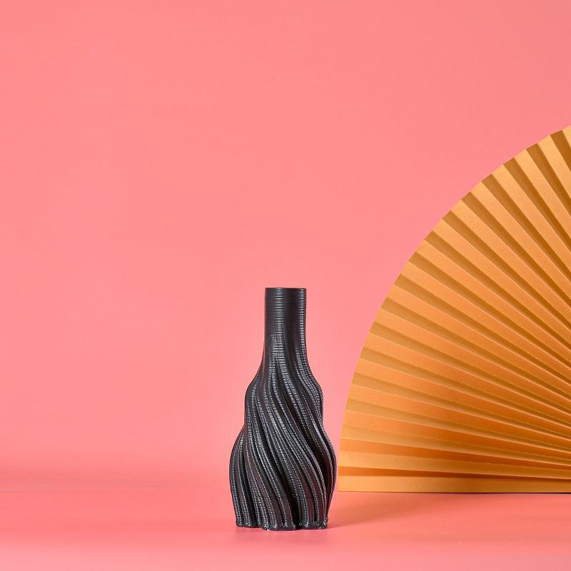 Introducing the Sleek Black Ceramic Vase, a stunning addition that embodies the essence of modern minimalism. Crafted with precision, this vase showcases: